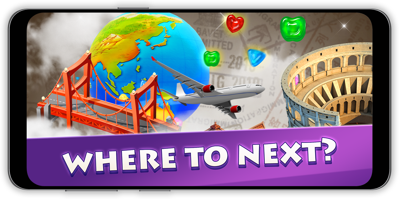 "Better than Candy Crush! Love the way the game travels around the world"